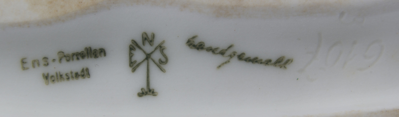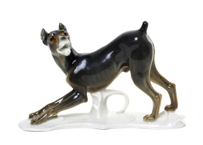 depicting a pouncing puppy, having standard marks, further incised 6107, with paper label.