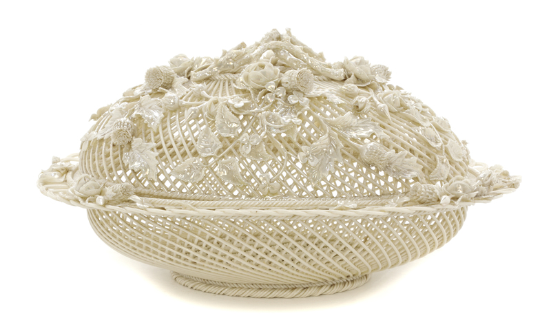 19th century, of oval form with applied roses, thistles and clover, having Belleek Co. Fermanagh pad mark to base.