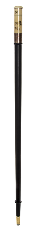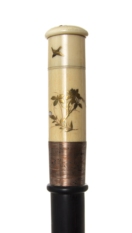 A Japanese Mixed Metal Inlaid Ivory Handled Walking Stick,