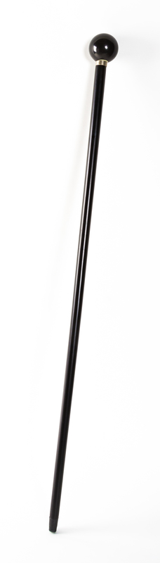 having an eight ball handle above the silvered metal collar, raised on a tapering ebonized shaft.