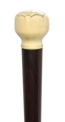 1920's, having a knob handle with a heavy cocobolo shaft, ending in an ivory nickel and steel tip.