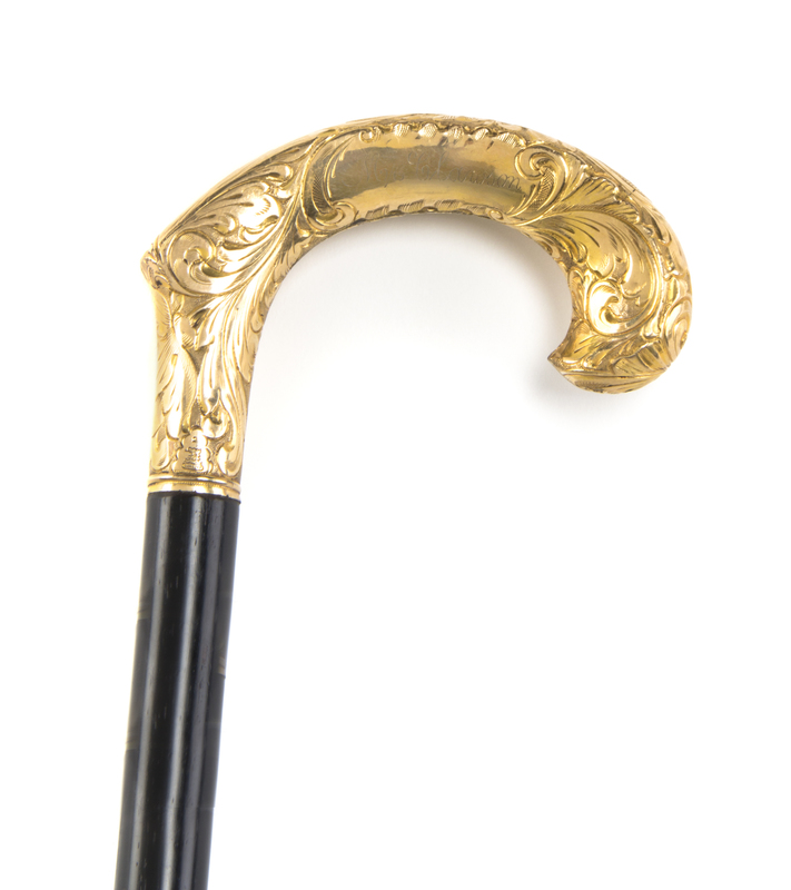 An American Chased Gold Handled Cane, Redlich & Co.,