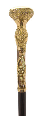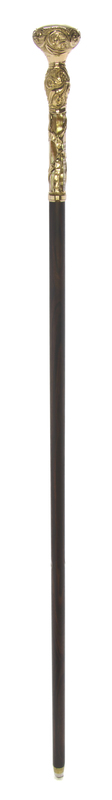 An American Chase and Embossed Gold-Filled Handled Walking Stick,
