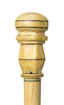 late 19th century, having a lathe turned style handle, with a whalebone shaft ending in a brass ferrule and tip.