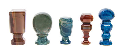 comprising lapis, agate, and other examples, each of turned or faceted form.