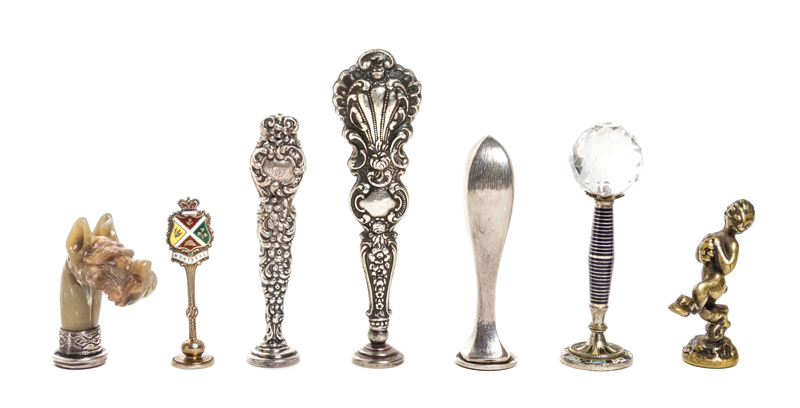 A Collection of Seven Silver, Silver Mounted or Brass Seals,
