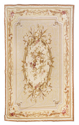 centered with a foliate center medallion on an ivory reserve within an inlaid border.