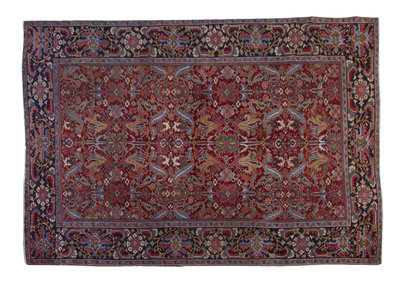 reduced in size, with allover foliate decoration within a red and cobalt foliate border.