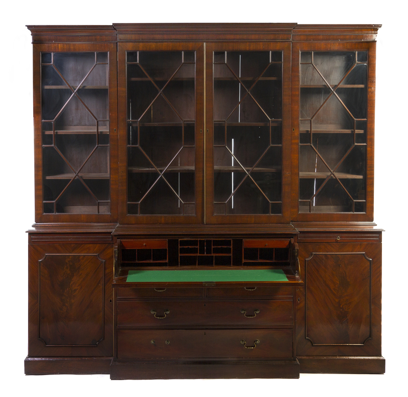 A Georgian Style Mahogany Breakfront Secretary Bookcase,