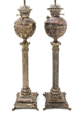 A Pair of Victorian Silver-Plate Oil Lamps,