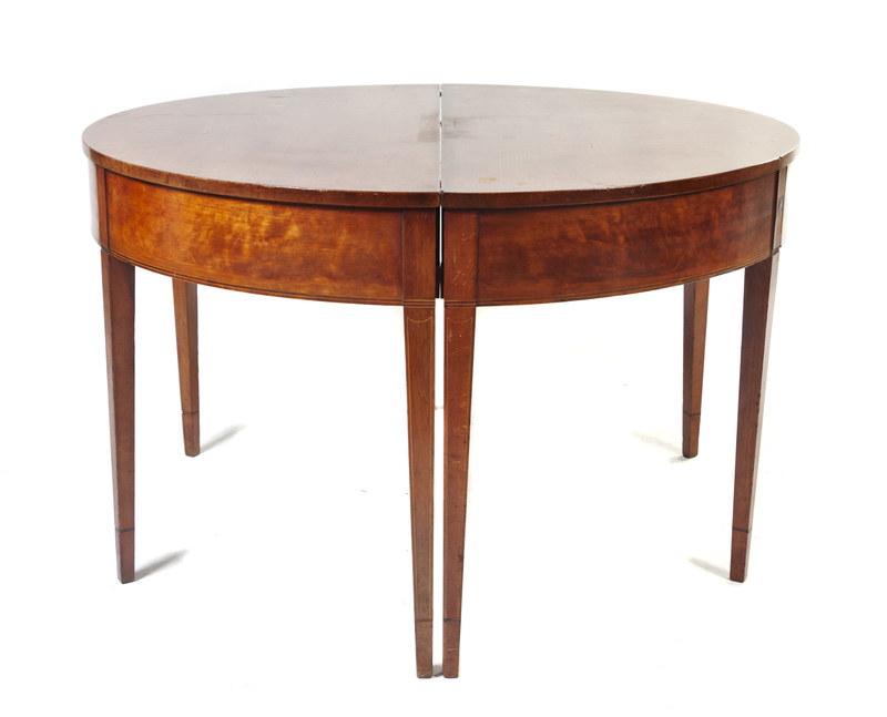 having a circular top above a plain conforming frieze, raised on square tapering legs, having stringed decoration.