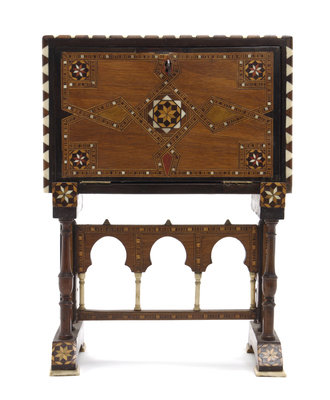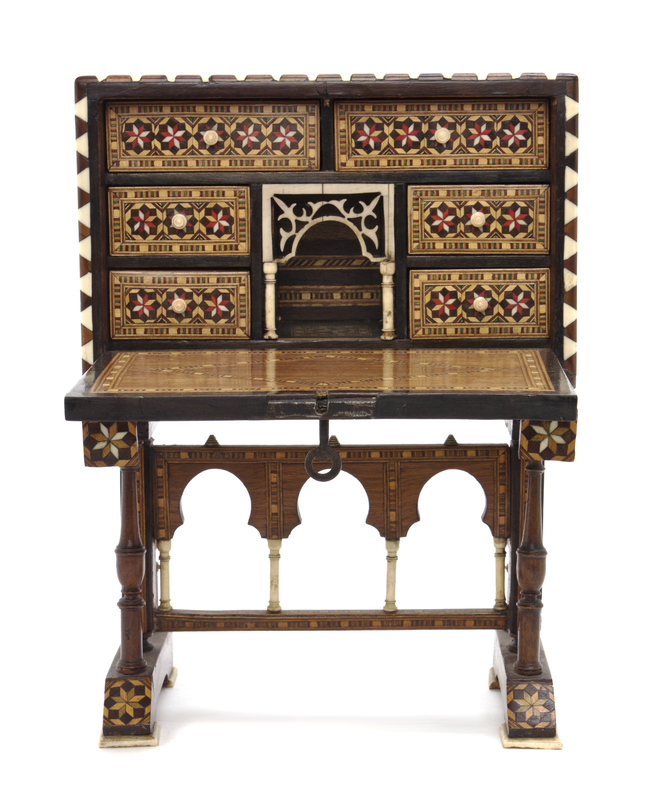 A Spanish Ivory and Parquetry Inlaid Miniature Vargueno,