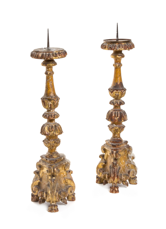 A Pair of Italian Ecclesiastical Giltwood Candlesticks,