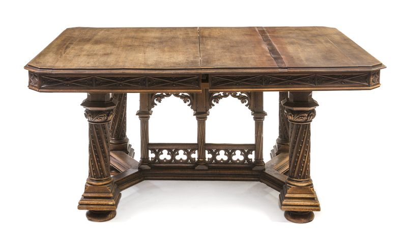 An Italian Gothic Revival Walnut Extension Table, attributed to Victor Aimone,