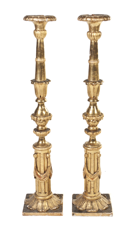 A Pair of Italian Giltwood Pricket Sticks,