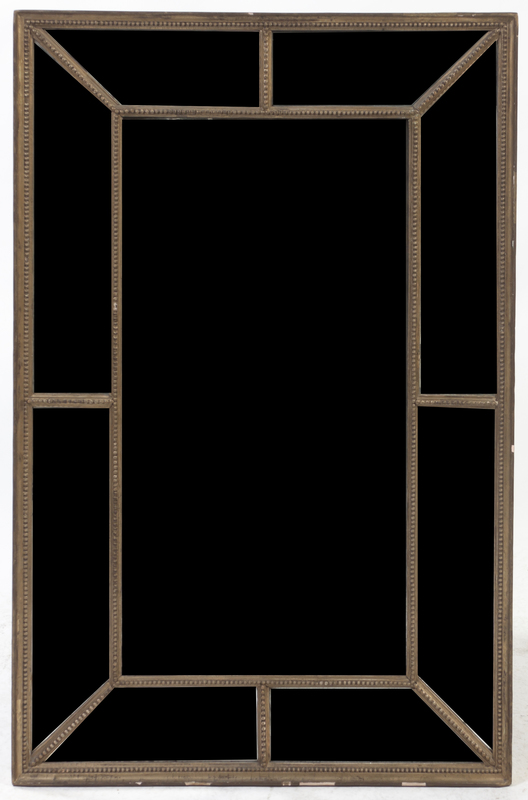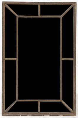 having a vertical rectangular plate within a mirrored border with beaded decoration.