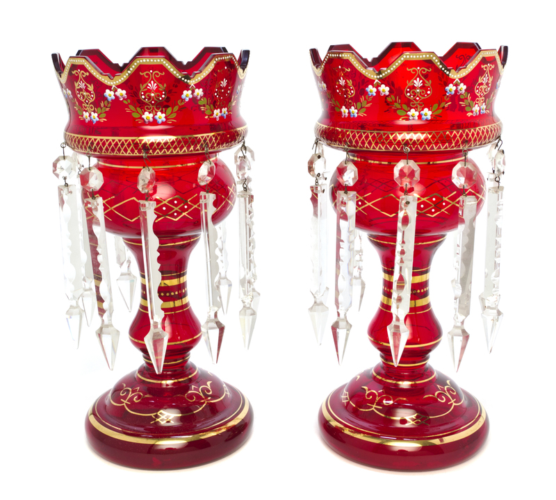 A Pair of Enameled Ruby Glass Girandoles,