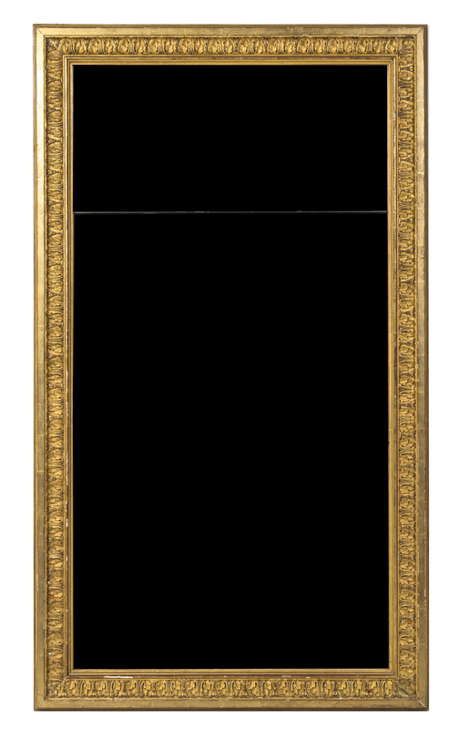 having a two-part rectangular plate in a conforming leaf carved frame.