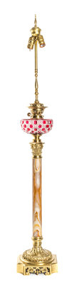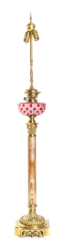 A Continental Cut Glass, Onyx And Gilt Metal Mounted Oil Lamp,