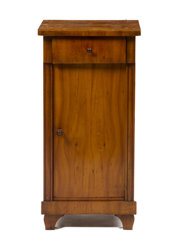 having a rectangular top above a single frieze drawer over a paneled door, raised on shaped feet.