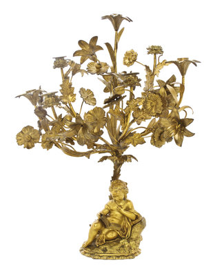 A French Gilt Bronze Seven-Light Figural Candelabrum,