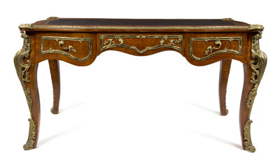 A Louis XV Style Gilt Metal Mounted Burlwood Bureau Plat,