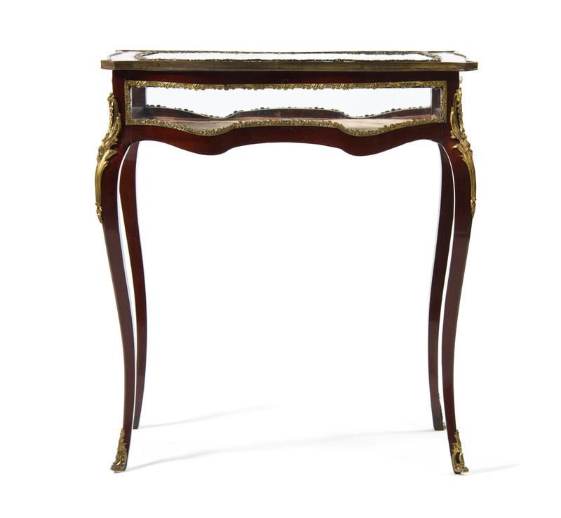 A French Transitional Style Gilt Metal Mounted Mahogany Vitrine Table,