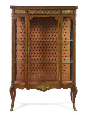A Louis XV Style Gilt Bronze Mounted Bookmatch Veneered Vitrine,