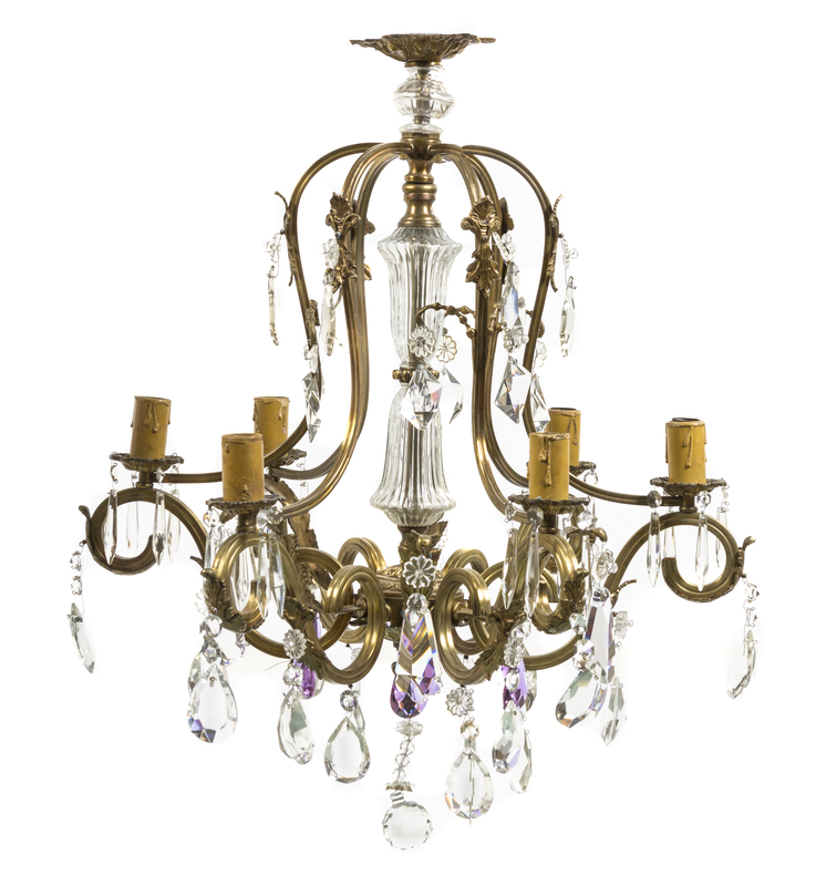A Louis XV Style Gilt Metal Six-Light Chandelier,
