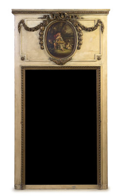A Louis XVI Style Painted and Parcel Gilt Trumeau Mirror,