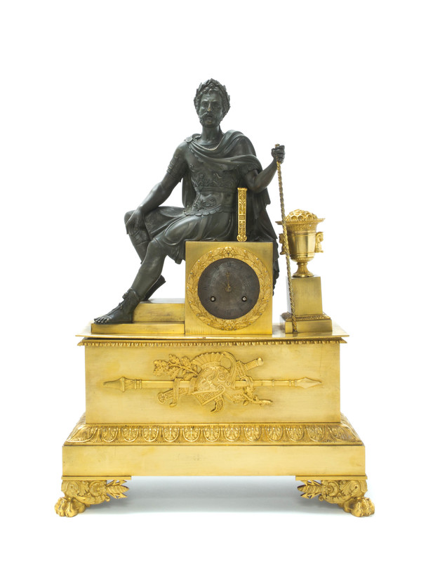 An Empire Gilt and Patinated Bronze Figural Mantel Clock,