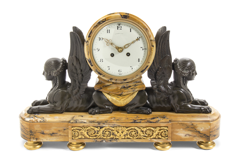 A French Marble and Patinated Bronze Mantel Clock, Tiffany & Co.,