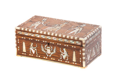 An Egyptian Revival Mother-of-Pearl and Ivory Inlaid Rosewood Box,