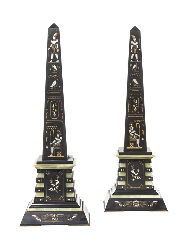 A Pair of Egyptian Revival Slate and Onyx Obelisks,