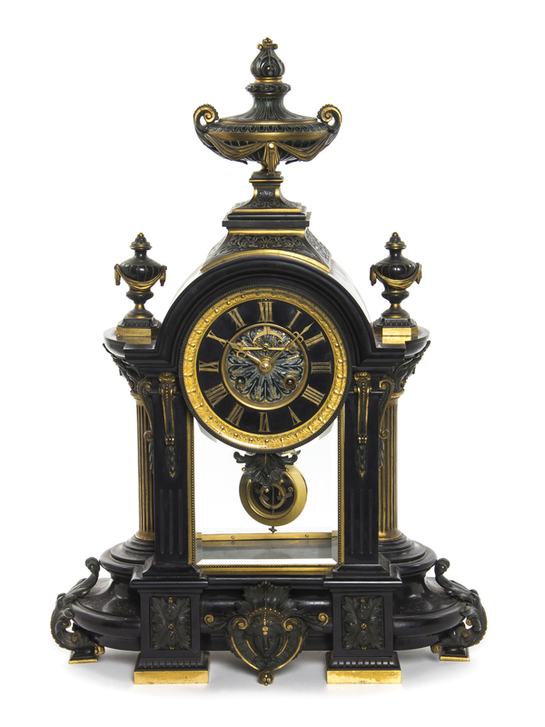 A French Neoclassical Ebonized Bronze and Slate Mantel Clock,