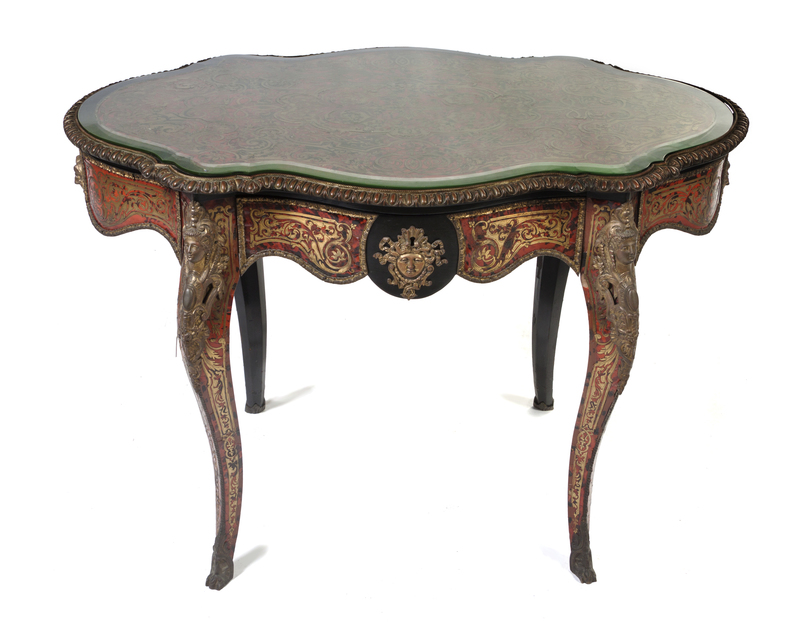 A Napoleon III Bronze Mounted Boulle Marquetry Center Table,