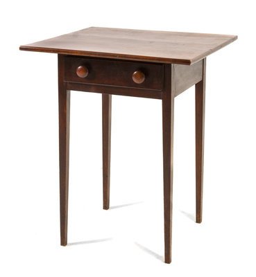 likely Connecticut, circa 1800, having a square top over a single drawer, raised on square tapering legs.