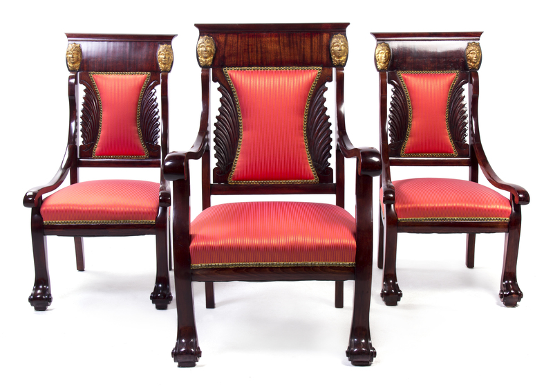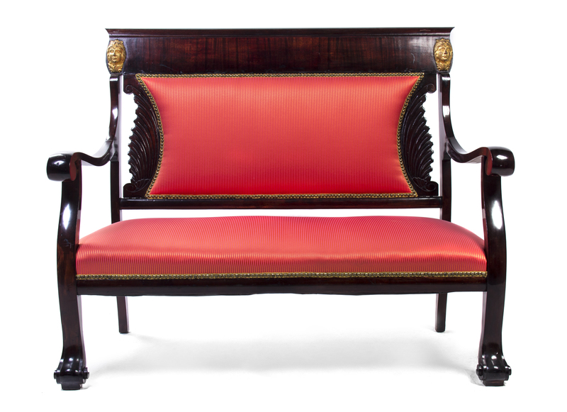 An Empire Style Parcel Gilt Mahogany Parlor Suite,