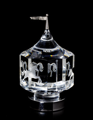 Carousel, designed by Peter Aldridge and Jane Osborn-Smith, model 1985, introduced in 1985, of hexagonal form with horse decoration.