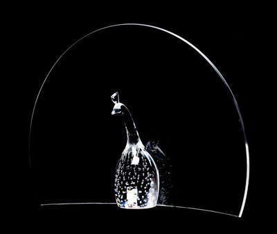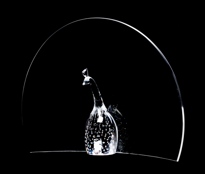 Peacock, designed by Joel Smith, the stylized bird with controlled internal air bubble decoration.