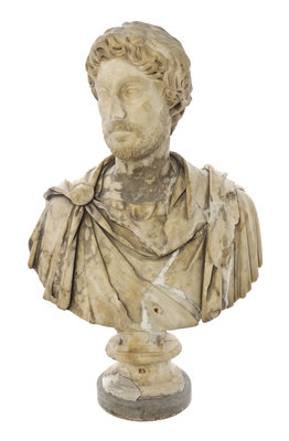 depicting a bearded Roman gentleman in a toga, raised on a circular socle.