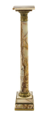 A Continental Gilt Metal Mounted Beige Marble Pedestal,