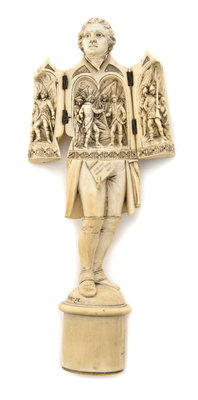 A Continental Carved Ivory Figural Triptych,