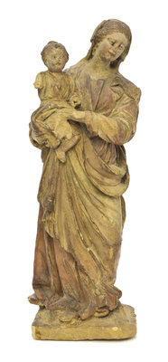 depicting the Madonna and Child with remnants of polychrome decoration.