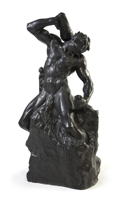 Man Chiseling his own Destiny, depicting a nude carving himself out of rockery, unsigned.
