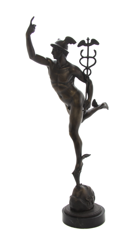 late 19th/early 20th century, cast after Giambologna's Mercury in Flight, the base signed F. Deluca 250 / 15.