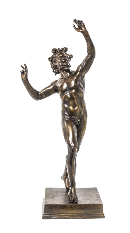 depicting the Faun of Pompeii, raised on a rectangular plinth base.