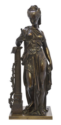 allegorical of exploration, cast as a standing classically robed maiden holding a compass and standing beside a column topped with a map of Earth, signed Paul Dubois.