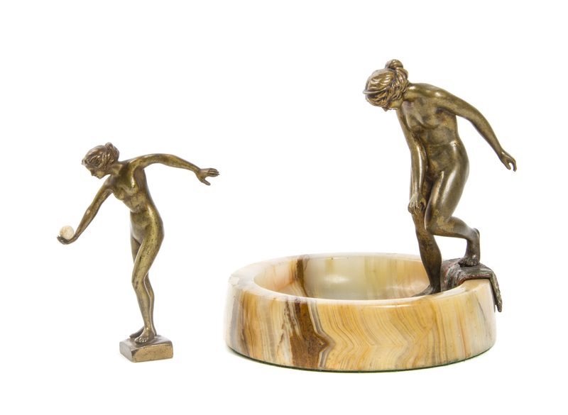 comprising a vide poche in the form of a nude maiden stepping into a pool and a girl holding an ivory sphere.