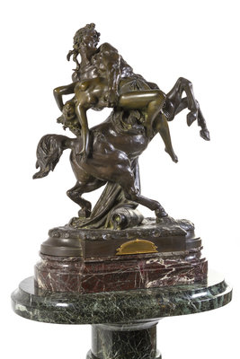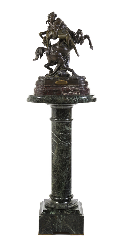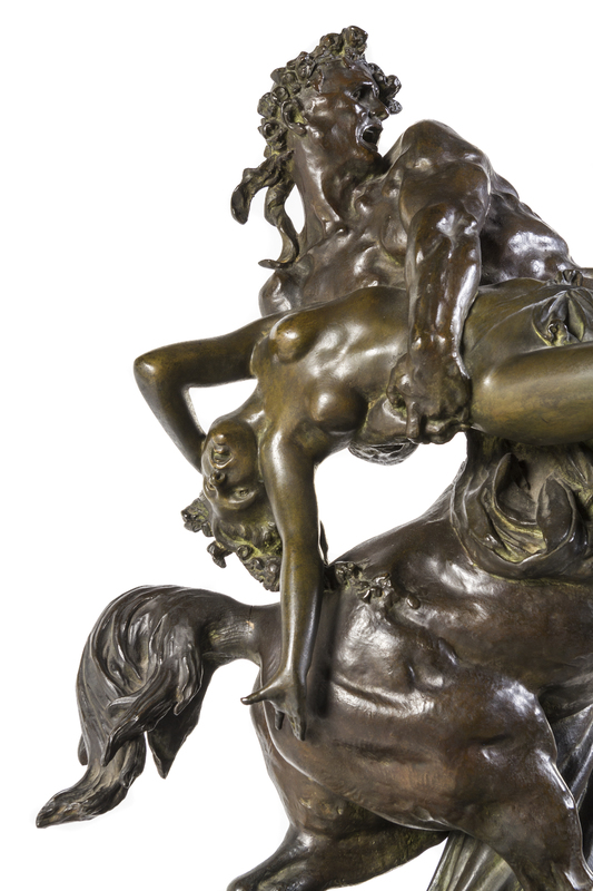 Enlevement D'Hippodamie, cast as the centaur carrying off with Hippodamia, signed A. Carrier-Belleuse, stamped Bronze with Syndication foundry mark, raised on a fitted marble pedestal.